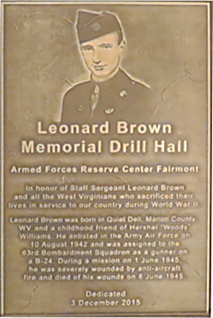 Leonard is also honored at the West Virginia Veterans Memorial in Charleston, West Virginia. A Purple Heart recipient, S/Sgt. Brown also received the Air Medal.